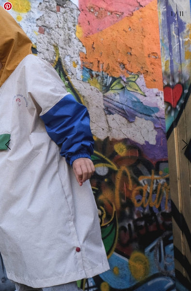 French waterproof, windproof, eco friendly rain poncho, made ethically in Europe from recycled materials.